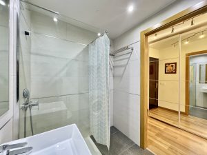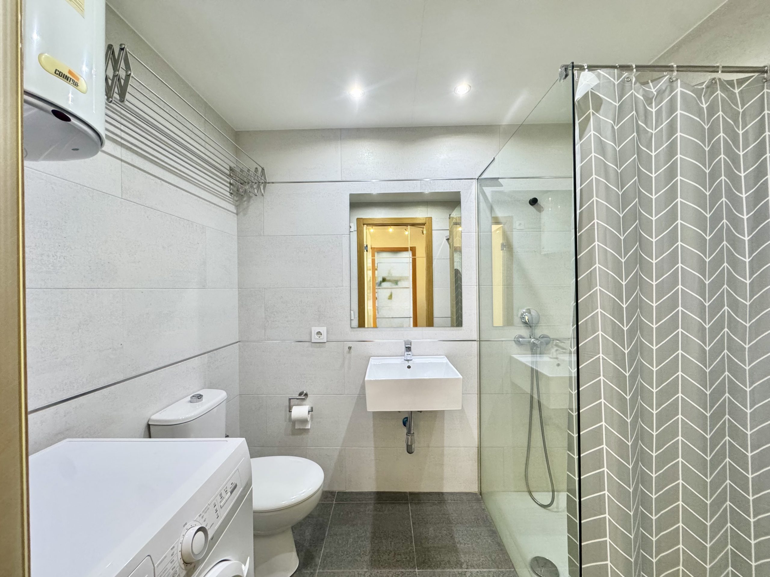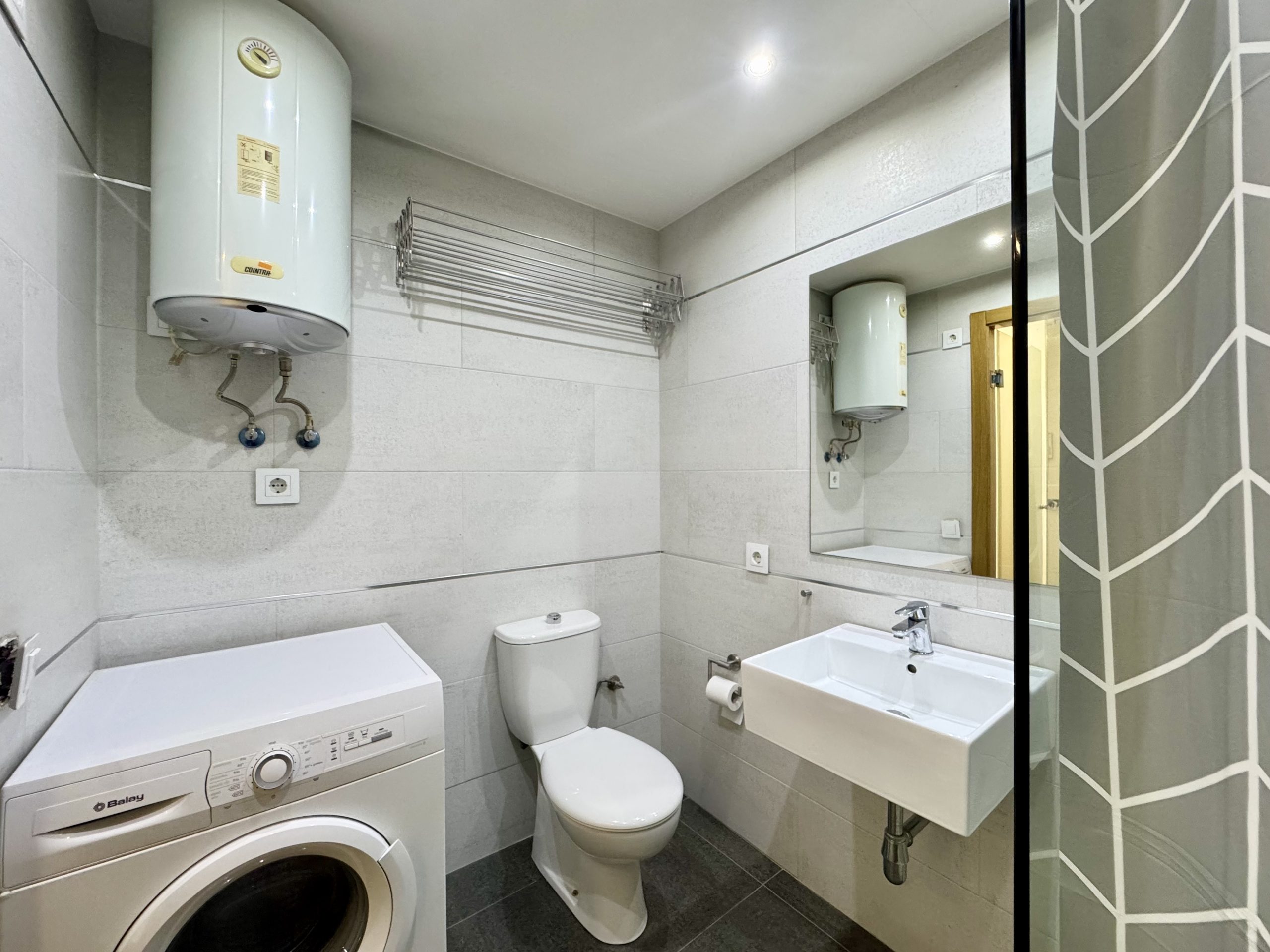 A la derecha de la entrada encontramos un cuarto de baño amplio, equipado con plato de ducha y con una práctica zona de tendal, muy funcional y bien integrada (Cuenta también con tendal exterior). A la izquierda se sitúa un armario de buen tamaño, ideal para almacenaje y organización desde el primer momento.