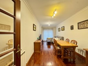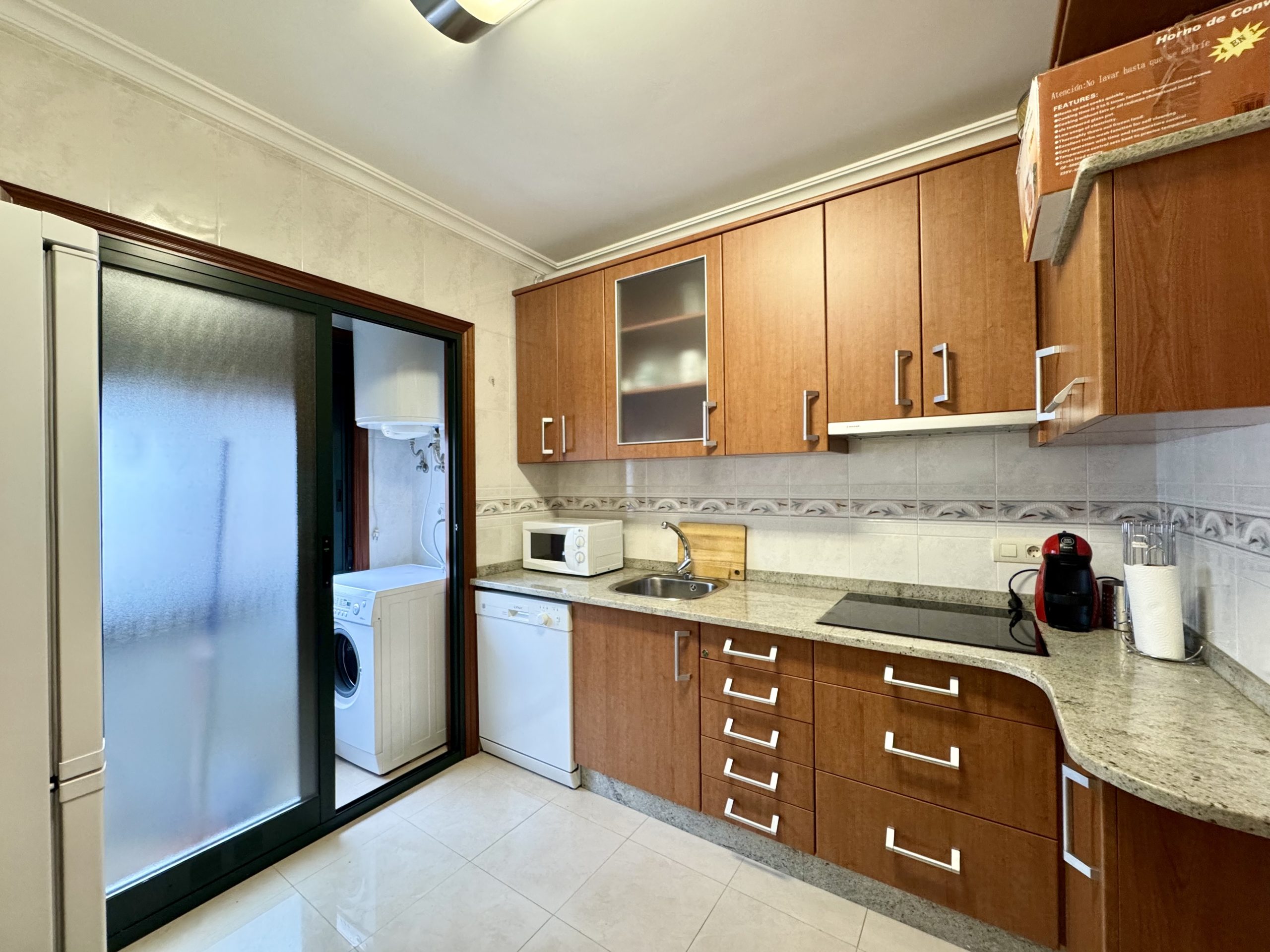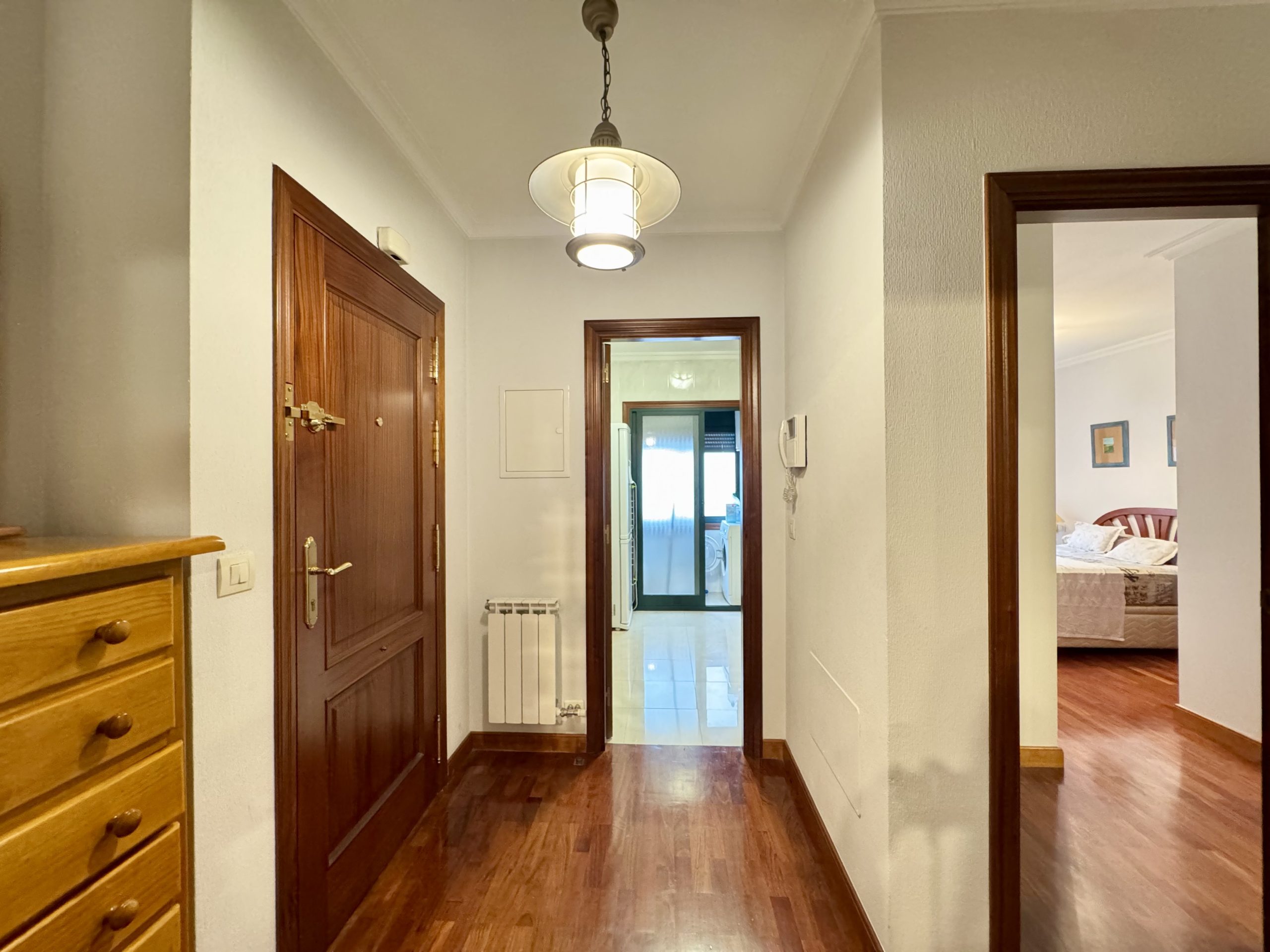 Al entrar, un amplio hall distribuidor da la bienvenida. A la izquierda se encuentra la cocina independiente, completamente equipada y con una práctica zona de lavandería con lavadora y secadora. A la derecha, un el salón-comedor ofrece un espacio acogedor y versátil para el día a día y el descanso.